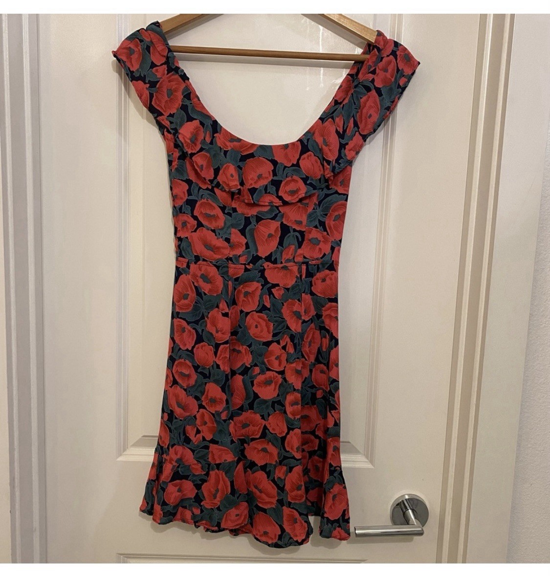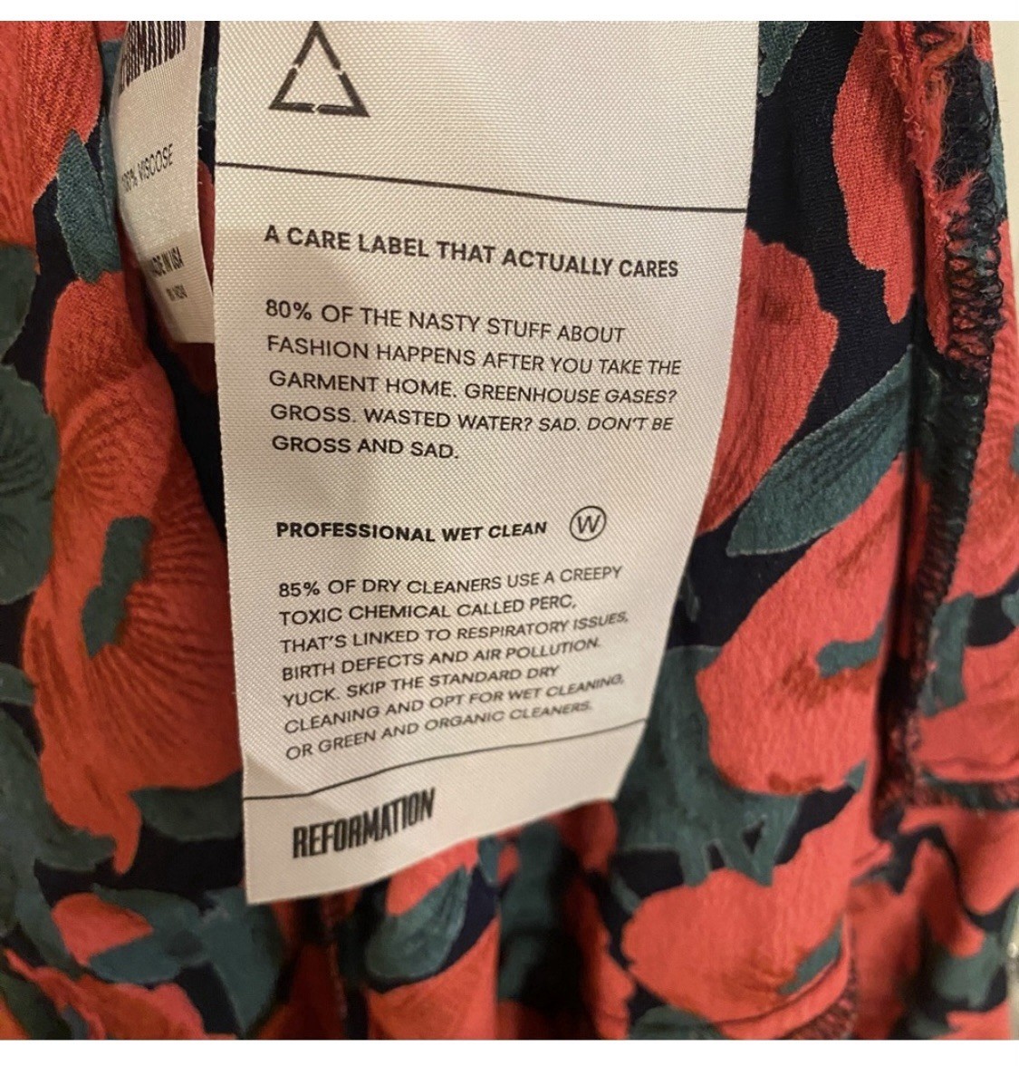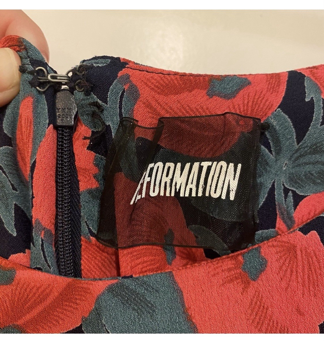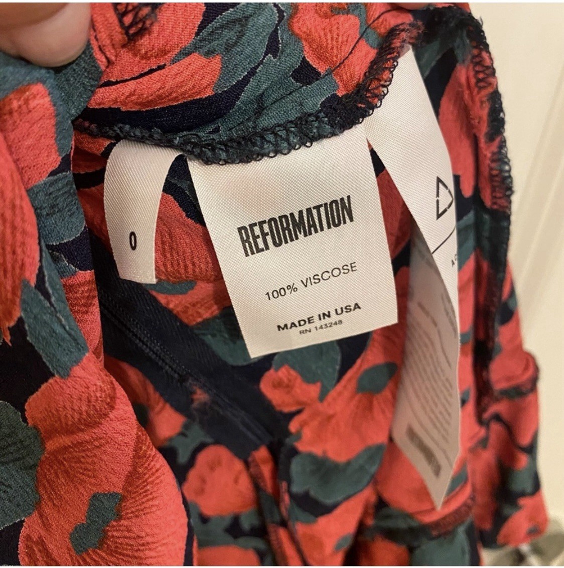 REFORMATION Perla Poppyfield Pink Floral Mini Dress Good pre-owed condiiton Ruffle detailing Perla floral pink mini dress by Reformation with ruffles in size 0. Beautiful, flirty dress can be worn with sleeve on or off shoulder. There is a flounce ruffle at top neckline and a ruffle hem. Hidden zipper in back with hook & eye at top. Both adorable & sexy. Great used condition. 100% viscose Made in USA Armpit-ap: 15" waist: 12.5" length: 32" Key words Event celebration birthday anniversary brunch girl breakfast date night cruise resort travel vacation garden tea