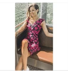 $ 15.84YUMI KIM Santorini Midi Wrap Dress Rain Forest Black Silk Floral Small Wedding