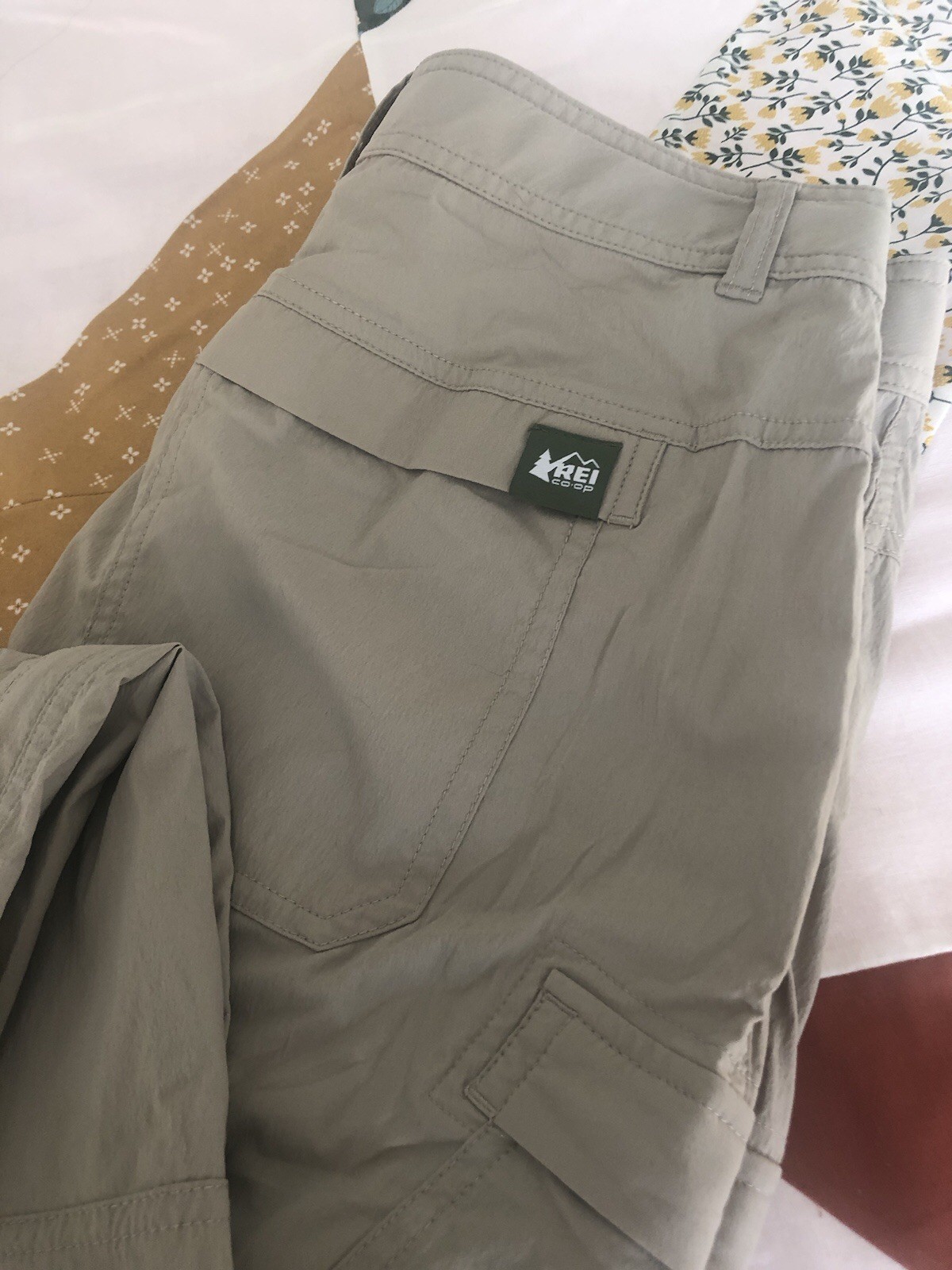 These REI Co-op women's khaki pants in size 8 are versatile for various outdoor activities and seasons. Made with a softshell fabric blend of polyester, nylon, and spandex, they offer stretch, lightweight feel, and quick-drying properties. The pants feature a button closure, adjustable waist, pockets, and a relaxed fit for comfort during hiking and walking adventures. With a convertible design, these pants can be zip off into shorts for added versatility in different weather conditions. Perfect for travel, activewear, or casual occasions in the outdoors.