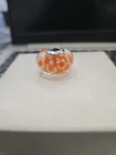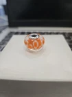 This is a PANDORA charm featuring an XL Murano glass main stone in orange with a flower shape. The charm has a 925 sterling silver core and is designed in a European style. It is part of a retired collection and showcases intricate flower details, perfect for adding a touch of nature-inspired beauty to your charm bracelet. Ideal for those who appreciate floral themes in their jewellery, this piece offers a unique and elegant addition to any collection.