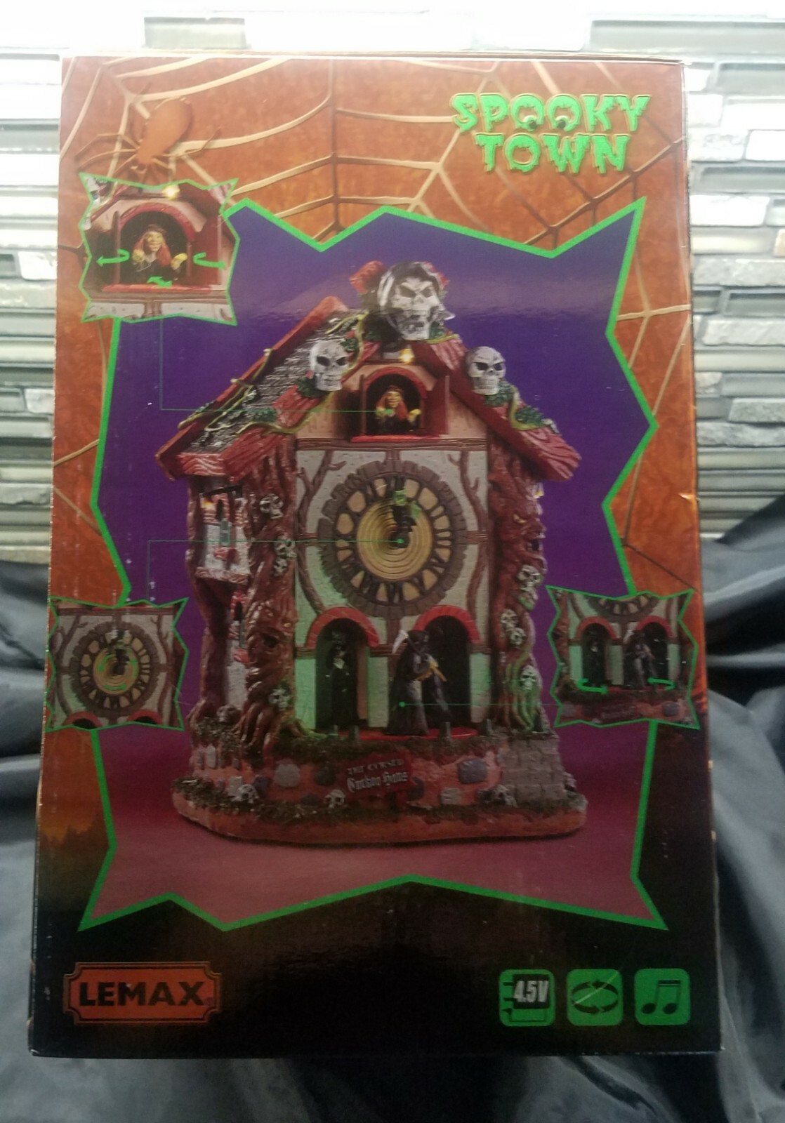 Spooky Town Lemax Signature THE CURSED CUCKOO HAUS Clock Halloween.I removed it from the package. The clock hand moves counterclockwise continues To move. It doesn't keep active time it is always in motion. When it hits the hour & 1/2 hour the witch door opens when it closes the grim reapers move around until it hits the quarter hour. They stop moving until the witch door opens again . Sold as is no returns. Message me with any questions. Thanks This was only opened for inspection and pictures.