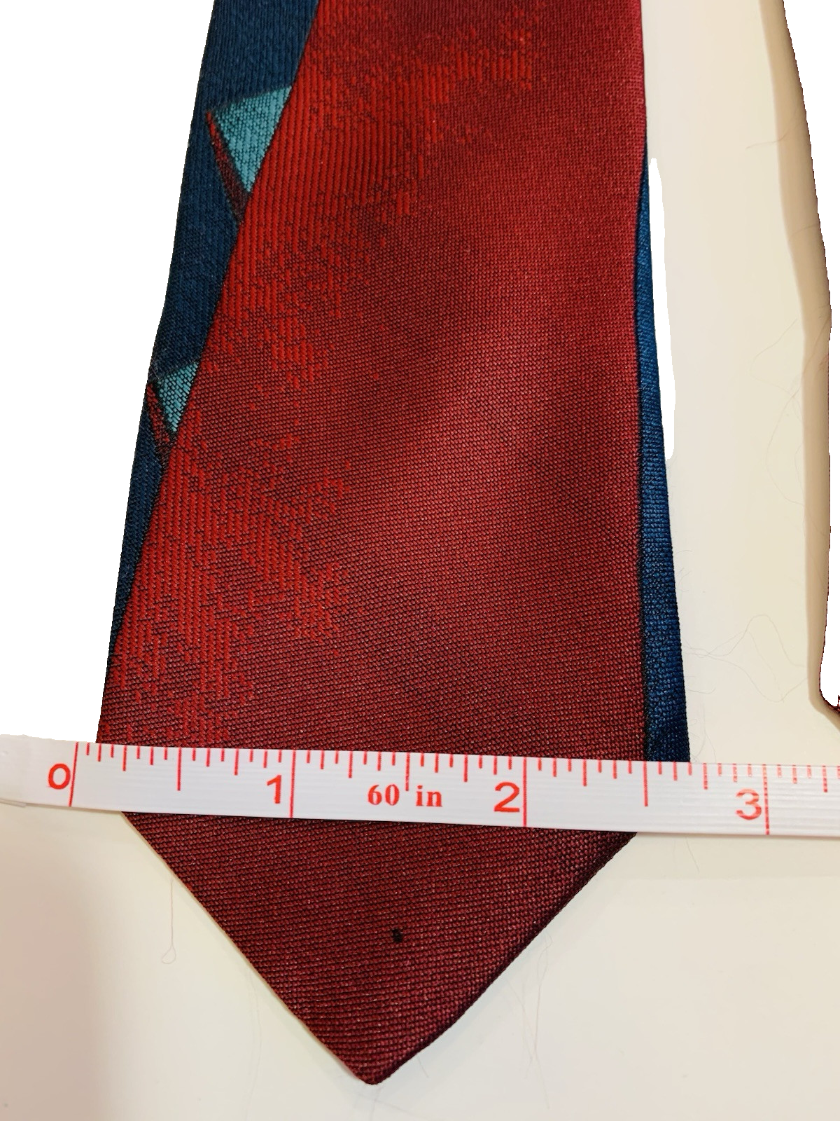 Crafted for the fashion-forward individual, this RETORO T.M. red tie boasts an eye-catching abstract pattern that makes a bold statement. The tie measures 54.5 inches in length and features a 2.75-inch base with a tastefully embroidered logo, adding a touch of sophistication to your attire.Ideal for both professional and social settings, this designer tie caters to the modern man's wardrobe. Its vibrant red hue paired with an abstract design ensures that it stands out in the best way, complementing a range of outfits and styles. Whether it's for an important meeting or a special event, this tie is a sartorial choice that won't go unnoticed.