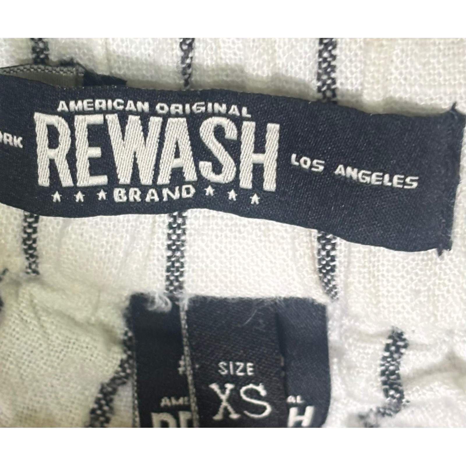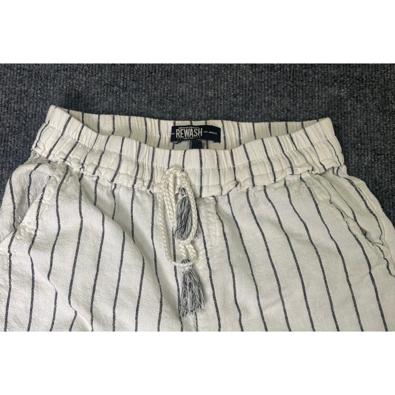 Embrace effortless style with these breezy REWASH wide-leg pants, crafted from a breathable linen blend. The crisp white fabric is adorned with classic vertical pinstripes in a deep charcoal, creating a visually elongating effect. A comfortable elastic waistband with a functional drawstring and decorative tassels adds a touch of bohemian flair, while the relaxed wide-leg silhouette offers freedom of movement and a flattering drape. Perfect for a casual day out, a beach vacation, or a relaxed brunch. Measurements: • Waist (laid flat): 13 inches • Inseam: 26 inches • Rise: 11 inches • Leg Opening: 11 inches Department: Women Material: Linen Blend, Linen, Rayon Leg Style: Wide-Leg Type: Pants Features: Elastic Waist, Lightweight, Breathable Closure: Drawstring, Pull On Pattern: Striped Accents: Tasseled Theme: Bohemian, Beach Occasion: Casual, Travel Keywords: REWASH pants, women's pants, striped pants, wide leg pants, linen blend pants, drawstring pants, tassel pants, casual pants, beach pants, vacation pants, bohemian pants, pinstripe trousers, XS pants, lightweight pants, summer pants