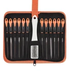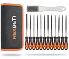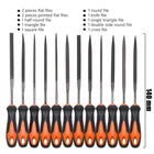 all the 12 pieces file are made by T12 Drop Forged Alloy Steel, the long lasting teeth were deeply milled tempered and coated for durable cutting and filing performance 12 pieces file set comes with 2pcs flat files, 2pcs pointed flat files, 1pcs half-round file, 1pcs triangle file, 1pcs square file, 1pcs round file, 1pcs knife file, 1pcs single triangle file, 1pcs double-side round file, 1pcs cross file all files are packed in a rugged, compact carry case for storage and portability. Each tool fits snugly into its respective place to prevent moving around and scraping rubbery handle will allow for hours of use buy with confidence - handy tool bag with a wide variety of files will allow you easily finish and enjoy woodworking widely use- this metal files are ideal for removing, refining, reshaping and scraping soft metal, wood, and plastic projects