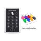 125KHz RFID Access Control Keypad Outdoor Rainproof Cover EM Card Reader 10pcs Keyfobs For Door Access Control System Product Features Classical standalone access control adopts high quality plastic material. Based on low power consumption and low cost. Suitable for household, office and department. * High quality and high security * Sensitively and response quickly * Support 1000 standard users * Support card, password, password plus card to open the door * Has a door bell button * Classical Appearance with useful function * Doesn't need to connect on the computer, can works alone * Application: Home/ hotel/ office/ department / apartment etc Support 1000 standard users 3 kinds of unlocking methods Precision internal component Fashionable shell design Product details Suitable for home, office and other places