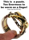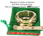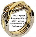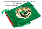 RING Hanayama Metal Brain Teaser Puzzle, Level 4 Difficulty, with Green Velveteen/Red Satin Lined Drawstring Pouch. (NOT finger Jewelry) RING hanayama has four intertwoven, “squiggley-shaped” rings. They release very easy. Objective is to reassemble as a smooth ring. Polished, silver and gold colored cast metal, brainteaser puzzle. Rated as a level 4 difficulty (on a 6 step scale where 1 is easy and 6 most difficult.) Your experience may differ. This puzzle is an enlarged reproduction of the Famous Turkish/Wedding 4 Band Puzzle Ring. 1.7 inch diameter. Much TOO big to be worn as jewelry. Includes soft GREEN velveteen/ RED Satin lined drawstring storage pouch. Measures approximately 3.5 x 4.5 inches laying flat. Bundled listing. Puzzle Measures 2.25 x 2.00 x 1.25 inches. Weighs 3.4 ounces. Small compact, pocket size puzzles will require some substantial brain power to solve AND to know how you solved them ! One of over 65 different pocket size metal brainteasers from the Hanayama Puzzle Company of Japan. RING Hanayama is a super enlarged version of a very famous disentanglement puzzle from hundreds of years ago. Looks easy ! Four inter-twined puzzle bands. Simply allowing the ring to tip sideways and the puzzle comes undone. Re-assembly very is tricky. Each band must be properly positioned and twisted around to put the ring smoothly back together. Requires NO FORCE. Just clever manipulations. Measures approximately 2 inches in diameter. It CANNOT be worn on one's finger. This is an exact, except much enlarged, replica of the famous Turkish Wedding Ring from hundreds of years ago. Meaning the puzzle interlock is identical. It is tough brain teaser. Turkish Puzzle Rings are historically fun and fanciful. Rated as a level 4 difficulty by the Hanayama Puzzle Company. "Scale of Difficulty" goes from 1 Easy to 6 Most Difficult. Your experience may differ. Recommended for ages 12 to 105 years. Shipping We offer FREE shipping on all orders! We ship within Three business days of payment, usually sooner. We use a selection of shipping services such as UPS, FedEx, USPS etc. We only ship to the lower 48 states, no APO/FPO addresses or PO Boxes allowed. Local pickups and combined shipping options are not provided at this time. Return You can return a product for up to 30 days from the date you purchased it. Any product you return must be in the same condition you received it and in the original packaging. Please keep the receipt. Payment We accept payment by any of the following methods: PayPal Please pay as soon as possible after winning an auction, as that will allow us to post your item to you sooner! Feedback Customer satisfaction is very important to us. If you have any problem with your order, please contact us and we will do our best to make you satisfied. Contact Us If you have any queries, please contact us via ebay. We usually respond within 24 hours on weekdays. Please visit our eBay store to check out other items for sale! Thank you for shopping at our store.