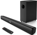 For optical connection, please set your TV audio output to "Optical" and set the digital audio format to "PCM" (PCM is a digital recording of analog audio, and is an optional audio format in many televisions), and make sure the protective caps at the ends of the optical cable are removed before plugging it in. For the better sound quality, please set the volume of the sound bar to 80 percent of maximum( Note: the maximum volume drop 2 levels is 80 percent) and set the volume of your source device to a suitable level. Sound Bar with Subwoofer Upgrade Your Home Theater Audio Experience: Powerful full-range drivers (total 70-watt output) deliver a more realistic, richer sound from a compact soundbar with deep bass. Sound Bar is a perfect TV speaker that optimizes sound clarity and creates incredible room-filling virtual surround sound. Deep Rich Bass: Feel the action and the beat of the music with the rich bass from a subwoofer. Sound Bar, Ideal Soundbar for TV, PC, Gaming, Computer, Projector, Televisions, Surround Sound Systems, Music Players, Smartphones or Tablets, Monitor, Flat Screen, Smart TVs. Sound Bar works well with all TVs sizes. 3 Sound Modes via Remote Control: This compact TV speaker comes with 3 equalizer modes: Music, Movie, and News modes. Use the remote control to select your favorite specialized mode for providing you with a wide range of stereo effects throughout the room so you can enjoy cinematic surround sound in your home. Wireless or Wired Connection, Easy Setup: Sound bar can be connected to most types of your devices via Wireless Bluetooth 5.0 connection, Optical, AUX(3.5mm), RCA, or Coaxial connection, Easily connect to your home theater, Smart TV, PC, phone, projector, DVDs, laptop, desktop, tablets, pad, and more. If your TV or other source devices only has a 3.5mm headphone socket, use the 3.5mm to RCA audio cable to connect the soundbar to your TV or other source devices. What You Get: TV Sound bar, Subwoofer, Remote Control, Power Adaptor, Optical Cable, RCA Audio Cable, 3.5mm to RCA Cable, User Manual, and Wall Mount Kit. If you have any problems, please feel free to contact us immediately.