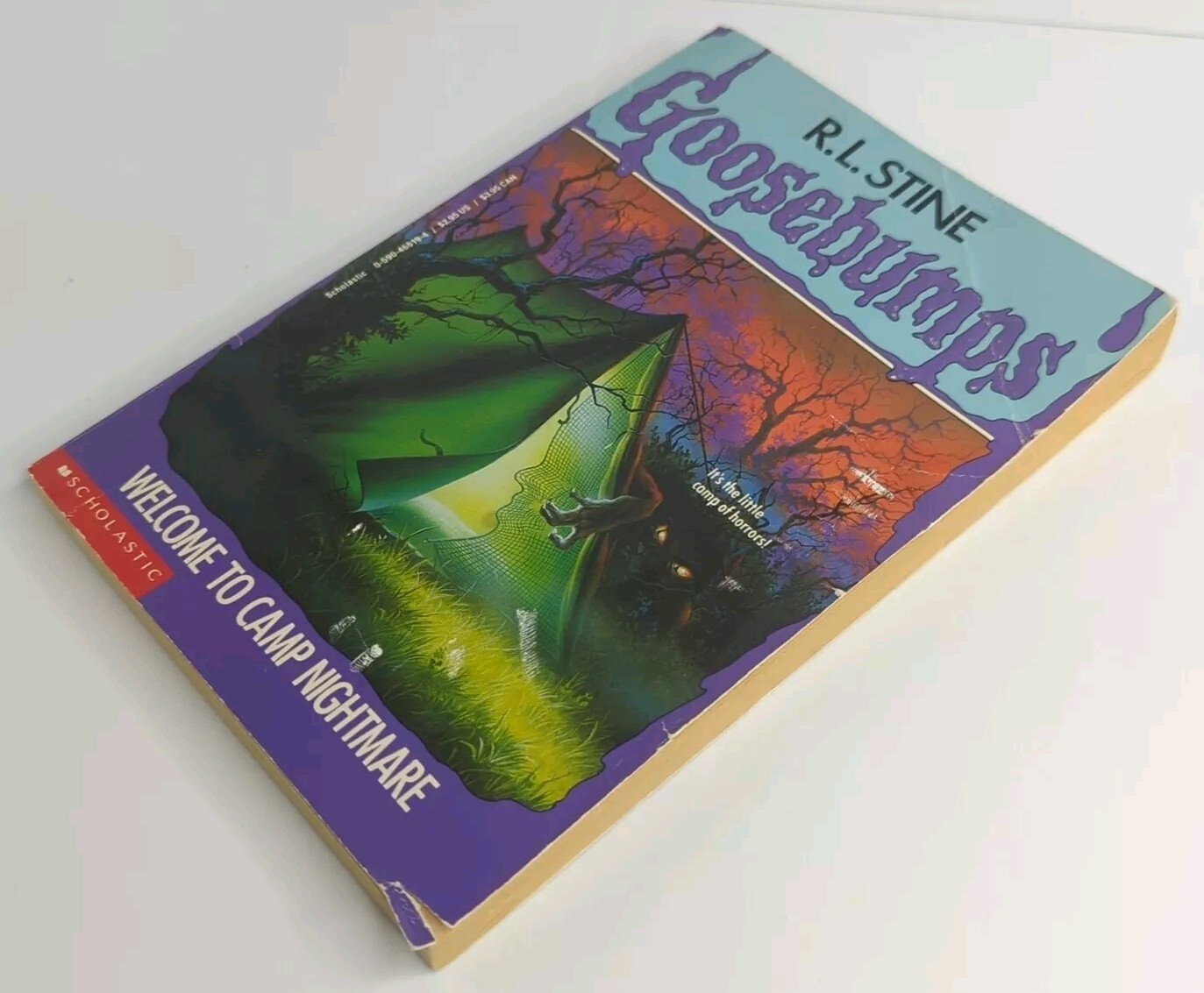 "Goosebumps Welcome to Camp Nightmare" by R.L. Stine is a vintage first edition novel in the popular Goosebumps series. Published by Scholastic, it is a horror story set at a summer camp, suitable for juvenile fiction readers. The trade paperback format measures 7.6 inches in length and 5.3 inches in width, with 160 pages. The book is written in English and weighs 4.2 ounces.