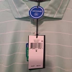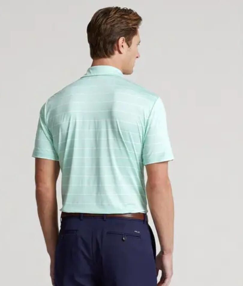 Crafted for comfort and style, the RLX Ralph Lauren Men's Polo Shirt in a refreshing green with white stripes is a versatile addition to any wardrobe. This small-sized polo, designed with a classic collared neckline and short sleeves, offers a relaxed fit that's ideal for both on and off the golf course. The performance fabric blend of polyester and spandex, featuring moisture-wicking and stretch capabilities, ensures you stay cool and unrestricted during any activity. Sun protection is not overlooked, as the shirt boasts UPF 50+ to shield against harmful rays during outdoor workouts or leisurely rounds of golf. Ralph Lauren's attention to detail is evident in the subtle yet distinct logo accent and the button closure that completes the preppy look. Whether you're hitting the gym or the links, this polo is designed to keep pace with your active lifestyle. Items are carefully inspected and sealed after photos. We carefully pack and ship out fast! We ship daily with one day handling.