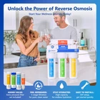 Make the purest water with your own home reverse osmosis system. Great in the kitchen: improve the taste of your cooking, coffee, ice, and drinks. experience true reverse osmosis water. Get setup fast with our quick connect tubing system. Includes fast flow faucet with 0.8 gpm delivery. a compact water filter for sink made to fit under counter in a cabinet. Best for house, apartment, residential, well water, industrial, rv, and office uses. Certified by an independent laboratory to NSF standard. Comes with 4 gallon (3.2 gallon water capacity) storage tank and tank stand. Includes all filters needed for setup and first year of use. Can be wall / cabinet mounted or freestanding, made for indoor use. Can be installed undersink, in a basement or other remote locations, you may need additional tubing or a delivery pump depending on how far away you plan to install or if you plan to link to a refrigerator as well. For every one gallon of water produced the system discharges between one and three gallons (depending on the pressure and quality of your incoming water). The system is compatible with 3/8" and 1/2" under sink connections. includes filter housing wrench. Operates on 40-80 psi water pressure, you may need a booster pump or pressure regulator depending on your water pressure. The water is cleaner and more convenient than any pitcher, faucet filter, or countertop systems. ’s 5 stage reverse osmosis water filtration system RO5DX is the complete solution for your drinking water. Reverse Osmosis Water Filter: Experience what water should taste like with the reverse osmosis water filtration system reducing up to 99.99% of Lead, Chlorine, Fluoride, Nitrates, Calcium, Arsenic, and more. Water Purification System: Drink the healthiest water on Earth. All our water filters are specially engineered to work together, producing the safest and best tasting water you’ll ever drink Under Sink Water Filter: Don’t waste money on professional installation. ’s quick and easy-to-understand design means you can install and understand everything about your new water filtration system Under Sink Water Filter System: No need to mess with refilling or activating your water filter, ’s water filtration systems automatically fill your water tank with high quality drinking water Leak Detection: Each under sink water filter includes an emergency leak stop detector that shuts off water flow when it detects unwelcomed moisture Customizable RO Water Filter System: home water filtration systems are fully upgradable and customizable with quick connecting fittings. Try additional filtration attachments including UV Water Filter, Alkaline Water Filter, Deionization Water Filter, and more On Demand Support: Support from experts who can answer any of your questions about your new water filter Help Has Arrived - Support from experts who can answer any of your questions about your home’s water Love your water - Environmentally friendly coconut carbon filters give unequalled quality and a clear natural taste