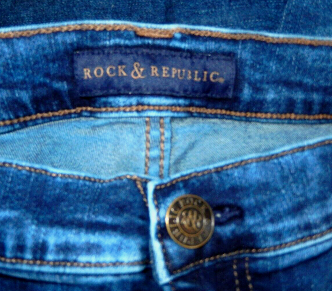 -Rock & Republic! -Great looking ankle jeans feature distressed 5-pocket styling with zipper faux-pocket deco, logo stud & rivets and comfy stretch denim fabric. -Size 16 Measures lying FLAT: Waist- 17.5" Hips- 20" Front Rise- 9.75" Inseam- 26" Leg Opening- 6.5" -Please note that some photos may not show accurate shades due to lighting, browser or to help show details. -LIKE IT?... Save gas & time shipped straight to your door FAST (usually same day paid).