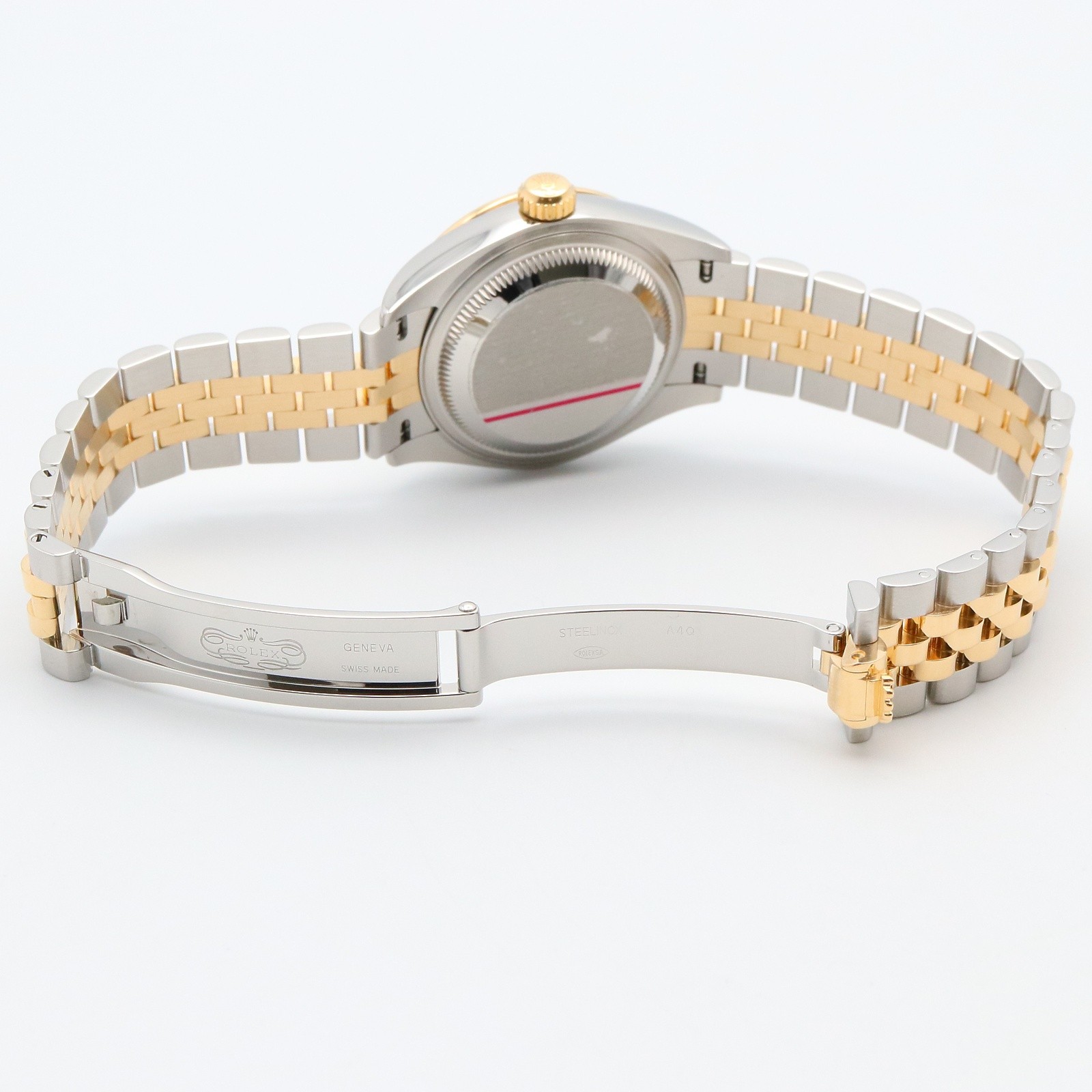 Size Type:RegularCase Size:28mmLug Width:14-12mmMovement:AutomaticCountry of Manufacture:SwitzerlandModel:ROLEX Datejust 28 Diamond Bezel Random NumberSeller Notes:“Good:There are a few scratches, stains and looks a little used.”Water Resistance Rating:Waterproof 100MWater Resistance:Waterproof 100MType:Wristwatchgtin13:Does not applySize:RegularStyle:Wrist WatchBrand:ROLEXMaterial:K18 (Yellow Gold)Country of Origin:SwitzerlandDepartment:WomenReference Number:279383RBRColor:GoldBand Material:K18 (Yellow Gold)UPC:Does not applyFrame Color:Gold