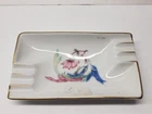 This Rosenthal porcelain ashtray is a beautiful piece featuring an ivory color with a gold rim, adorned with a floral and bird design. Its rectangle shape and vintage original production style make it a unique addition to any collection. The backstamp is printed and it was made in Germany, specifically in Kronach. The ashtray is perfect for those who appreciate fine porcelain and decorative pottery. It is a must-have item for collectors of Rosenthal brand pieces. Its history and origin make it a valuable item for those who appreciate the beauty of vintage and antique porcelain.