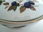 Nice Vintage Royal Worchester 8 1/2" covered dish in Evesham Pattern with gold trim. Has vent hold for entre. Dated 1961. Nice used condition with very very slight wear inside bottom. Normally these are all scratched up but not this one! No nicks,chips,cracks,crazing or repairs. Just some gold wear on rim. Sent Priority mail with tracking and insurance. We gladly combine same day wins when we can nad refund any excess postage over $1.00. Thanks for looking!