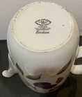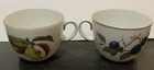 This beautiful Royal Worcester porcelain coffee/teapot is perfect for serving your favorite hot beverage. Made in England, this pot features a lovely yellow-green Evesham pattern and holds up to 5 cups. The pot stands at 8 inches tall and is perfect for adding a touch of elegance to any table setting. Crafted from high-quality porcelain, this coffee/teapot is durable and will last for years to come. It comes complete with 2 cups and 2 saucers, making it perfect for serving guests or enjoying a cup of coffee or tea alone. The Royal Worcester brand is known for their high-quality pottery, and this piece is no exception. Add it to your collection today! NOTE: There is a small chip on the rim of the saucer on the right as pictured in the photo of the 2 saucers.