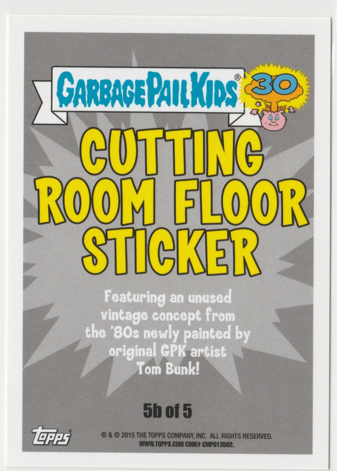 R-Rated Roger #5b of 5 Topps Garbage Pail Kids GPK 2015 30th Anniversary Series Cutting Room Floor Sticker subset personal stock photos centering of card may vary compared to listed images