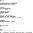 SAFE & SECURE SHOPPING 100% SATISFACTION GUARANTEED FAST SHIPPING Store Categories Store Categories Other eBay Motors Grille You may also like Stainless Steel Weather Protection Box Wall box Rain Cover For Doorbell Socket 218.64 USD Free shipping 3PCS Gloss Black Front Grill Grille Fit Mini R55 R56 R57 R58 R59 Cooper S & JCW 160.65 USD Free shipping Front Bumper Lower Grill Trim 51117355238 Fit Mini F55 F56 F57 2014-2023 90.65 USD Free shipping Gloss Black Front Bumper Grill Grille Fit BMW 2 Series F44 2020-2023 Coupe M 100.65 USD Free shipping Fog Lamp Light Cover Insert S-line Grill Fit VW T5 T5.1 2010-2015 Gloss Black !! 69.6 USD Free shipping 2PCS Rear Tail Lights Lamps For Toyota Tacoma 2001-2004 W/Bulbs US 84.65 USD Free shipping RSQ5 Black Front Honeycomb Fog Lamp Grilles Cover For Audi Q5 SQ5 2018 2019 2020 Product Description Feature: Gives your vehicle a new style and appearance Accentuates your vehicles overall look A great upgrade for your vehicle Specifics: Type: Fog Lamp Grille Codition: 100% Brand New Material: ABS Plastic Color: Gloss Black Finish: Painted L*W: Same as pictures whow Fitment Type: Direct Replacement Placement on Vehicle: Front, Lower, Left, Right Fitment For: For Audi Q5 SQ5 SUV 2018-2020 Note: Please note that this item fit Sport Model only!!!!! Package Included: 2 * Fog Lamp Grille Note: 1.Professional installation is highly recommended. 2.All dimensions are measured by hand, there may be small deviations. About Us Shipping Terms Contact Us About Us Bruce & Shark is a company Focus on Motorcycle parts more than 11 years. The design inspiration comes from the awe of the vast sea and worship of the fighting sharks, therefore Bruce & Shark takes a shark as brand logo. Since its inception, we have always put the "customer first" and "top quality" as our principle. We specialized in selling Motorcycle parts and providing customers with various types of high-quality products. Our brand Bruce & Shark has enjoyed good reputation in America, Europe, Japan, Canada and Africa, covering more than 30 countries. Our vision is to deliver high-quality Motorcycle parts products and sincere services to the world. Our main products are motorcycle mounted, fuel pump, stator, windshield, Seat Cover, motorcycle fairing. Welcome to our shop to choose products that are worth more for your Motorcycle! Please Add me to your list of favorite sellers and visit often. Thank you for your business. Shipping Shipping Terms International Buyers – Please Note: 1. Import duties, taxes and charges are not included in the item price or shipping charges. These charges are the buyer’s responsibility. 2. Please check with your country’s customs office to determine what these additional costs will be prior to bidding/buying. 3.Buyers' Information: We strive our best to provide you the most reliable, affordable way of shipping service. But sometimes international delivery is highly depended on the courier company and local customs/duties. If you do not receive your item on time, please sent us ebay message immediately for further assistance. Thank you for your understanding. Terms We stand behind everything that we sell and will do everything possible to assure you are satisfied. When you receive your purchase if you are not 100% satisfied, please sent me ebay message and we will do our best to make you happy. If you still want to return your purchase, simply ship the item(s) back to us and we will refund your original purchase price and the original shipping charge. Buyers are responsible for the postal cost of returning the items. We must be notified of the intent to return your item within 30 days of receiving the item. Items returned must be in the same condition that they were received. How to return 1,Please ask us for return address . 2,Shipping back the package . The RMA#(Return Merchant Authorization Number = Your ebay ID) must be clearly written on the return package ,Otherwise the package will be refused. 3,Sent us the return tracking number. 4,All returns will be inspected prior to a credit being issued. Contact Us Sent ebay message in English If you have any questions, our Customer Service staffs welcome you to sent me ebay message. We strive to answer all questions and resolve any problems as quickly as possible. Business Hours: HongKong Time GMT+8:00 Monday-Saturday 9:00-17:00 Copyright © 2022 Tongtool