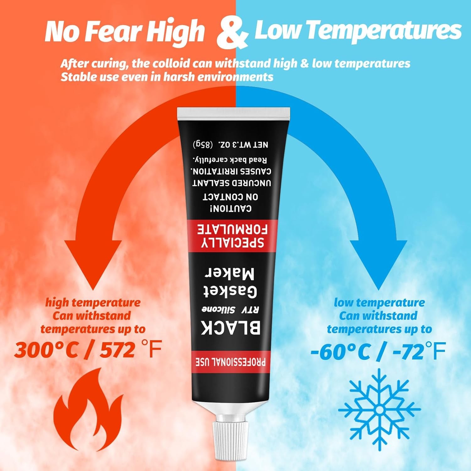 RTV Silicone Gasket Maker, High Temp Resist Oil, 170g, Black Product Details Product Dimensions : 8.66 x 4.53 x 1.38 inches; 7.05 ounces Item model number : GN0105RD4A Manufacturer : 1DFAUL Brand: 1DFAUL Specific Uses For Product: Automotive Material: Silicone Item Form: Liquid, Patch, Strip Special Feature: High temperature resistance, oil-resistance, non-corrosive, waterproof, freeze-proof Our RTV silicone is a sealing product specifically designed for automotive engines to prevent oil and gas leaks and ensure efficient operation. Our silicone sealant can also be used in gearboxes, front and rear axles, and pump superchargers, form various silicone gasket Our gasket sealant cures quickly into a leak-proof gasket that replaces cutting gaskets. They are flexible and will not shrink or crack even under high temperature, cold, high pressure, or vibration, maintaining a strong bond Our high temperature silicone sealant is oil-resistant, non-corrosive, water proof, freeze-proof, fully fills gaps in surfaces, seals completely, prevents fluid leakage and reduces energy loss Suggestions for use: After cleaning the oil on the surface with cleaning fluid, apply high temperature silicone evenly. During the curing process, a certain amount of pressure needs to be applied to ensure that silicone RTV fully fills the gaps NOTE: Carry out a sealing test after sealing to prevent damage to the instrument during actual use; Curing time is different in different environments, eg: 25℃, 10~30min; Applicable temperature: - 60~+300°C; Ultimate pressure: ≥10MPa High temperature silicone sealant is a sealing product specially used for automobile engines. It can form a uniform, stable and continuous thin layer on the joint surface of parts, and can fully fill the depressions and microscopic gaps on the joint surface to complete the seal. Can be turned into various types of sealing silicone gasket after curing.Scope of application: various types of engines, gearboxes, front and rear axles, pumps, superchargers, Valve Covers And Valve Guides, Oil PansFeatures: Waterproof, antifreeze, high temperature resistance, oil resistance, non-corrosive, fast curing, strong reasons for ineffectiveness may be: 1. High temp sealant does not conform to the environment at that time, such as high Temperature environment, high heat silicone sealant cannot be used. 2. Uneven coating. 3. Insufficient curing time, environmental changes will extend the curing time. 4. Surface oil stains have not been cleaned , resulting in weak bonding. 5. RTV silicone gasket maker has: 1. Conduct a sealing test after sealing to prevent damage to the instrument during actual use. 2. Different environments require different curing times: 25℃, 10~30min (room temperature) 3. Applicable temperature: - 60~+300°C 4. Ultimate pressure: room temperature: ≥10MPa 5. Do not come into contact with uncured RTV silicone sealant