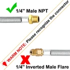 2 Packs RV Propane Hoses with Gauge, 18 Inch Stainless Steel Braided Camper Tank Hose,Rv lp Gas Hoses Connector for Standard Two-Stage Regulator, 40Lb 250PSI, 1/4" NPT /QCC1 Fittings Size: 1/4" Male NPT /QCC1 Fittings Brand NQN Material Stainless Steel Color Silver, Gold, Yellow, Black Maximum Pressure 250 Pound per Square Inch Item Length 18 Inches Manufacturer NQN About this item 🔥【NQN Upgraded Stainless Braided QCC1 1/4" NPT RV pigtail propane hose】1/4" NPT stainless steel braided RV propane pigtail hose to 1/4" Female NPT. (Note: Not the 1/4” inverted flare. Please check your connector before you order it.) This propane tank hose come with tank gauge level indicator, also with 3 different colors Dial Gauge can glows in dark, which allows you to read and monitor the gas level without necessarily removing the tank, and can detect the leaks. 🔥【Premium Material】1/4” Female NPT x Acme Nut(NOT 1/4" Inverted Flare), Gauge, and 3/8" Male Flare Fitting Connector are made of 100% Solid Brass. 18 inch QCC1 1/4" NPT RV pigtail propane hose is made of durable stainless steel braided, with weather resistance, anti-corrosion, anti-aging, air tightness, heat-resistance, flexibility features. Durable solid brass provides secured connections between appliance and tank. This Propane Hose with CSA Certification, ensures air tightness and stability. 🔥【 Easy to Install & Wide Application】The QCC1 Male side can connect with hand wheel easily. And the 1/4 inch Male NPT x Acme Nut side can tighten easily with the free wrench. The pigtail hose can also be used to connect to an installed 4-Port Tee as an auxiliary propane supply. Fits for RV, Camping, BBQ, tailgating, heating needs or having an outdoor cooking. Add 2 Velcro easy to store and use: Buckle Velcro to hang and Small Velcro to fix, save your space after using. 🔥【Compatible】This 18" RV pigtail propane hose can connect a 5-40 lb refillable propane tank or LP gas tank to your camper's 1/4" NPT standard with 2-stage regulator. This RV Propane Hose with1/4" male NPT (NOT 1/4" Inverted Flare), NOT FIT 2-stage auto-changeover regulator with 1/4" female inverted flare fittings. 🔥【Packaging & Two Years 100% - Satisfaction Guarantee】The set includes: 2 Pcs 18 inch Stainless Steel Braided QCC1 1/4" NPT RV Pigtail Propane Hose with Gauge + 1 pc Wrench + 1 pc Roll Yellow Sealing Tape + 1 pc Buckle Velcro + 1 pc Small Velcro. If you're not satisfied with this item at any time within two years after purchased, we'll provide a refund or replacement. (Item does not ship to Miami&Doral, FL), have any problem please contact us !