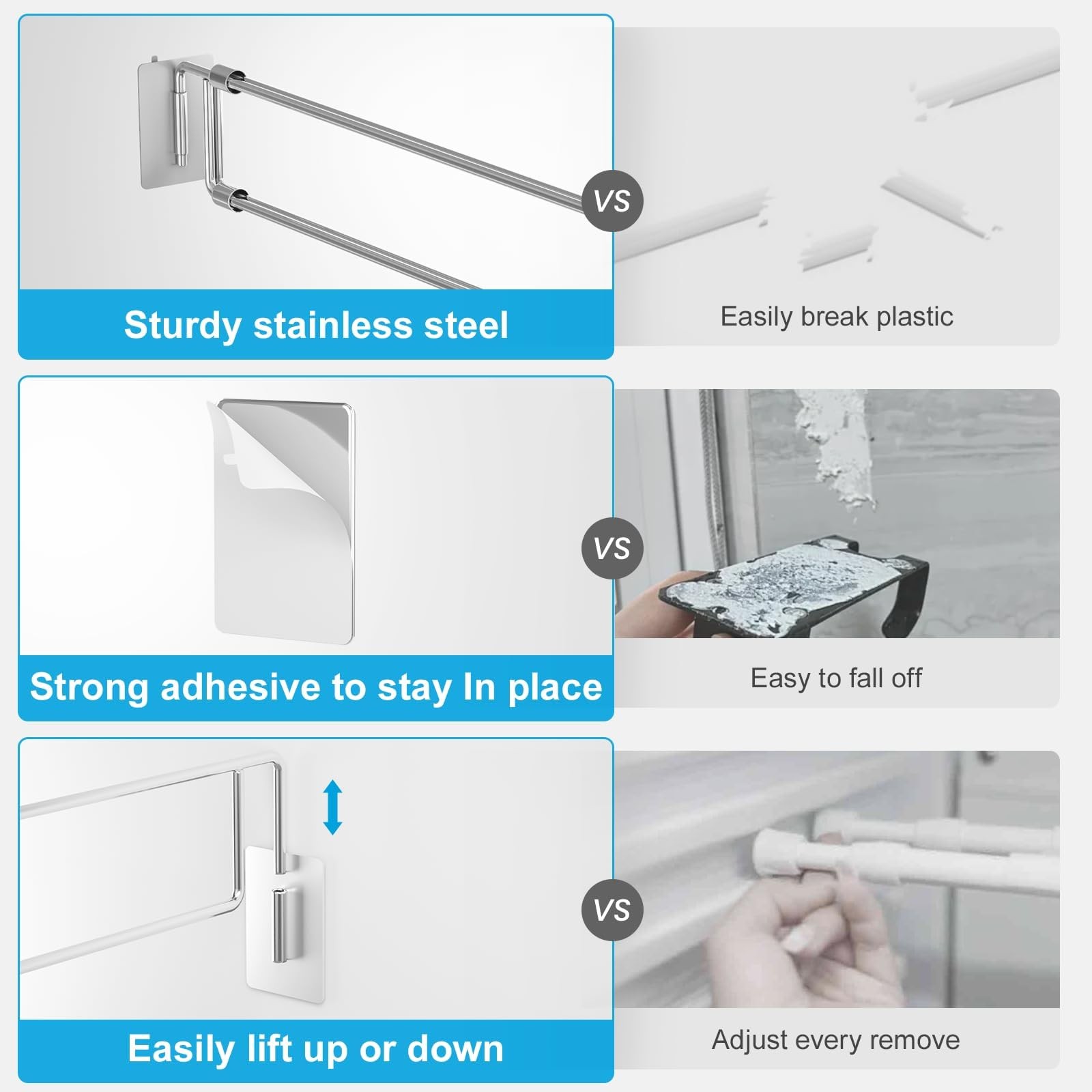 RV Cupboard Bars, RV Refrigerator Bar Stainless Steel, camper must have RV accessories for inside storage and organization parts 【RV Secure Adjustable Bars】Designed to secure items in moving RVs, our RV refrigerator bars effectively prevent items from shifting or falling out. Enjoy your RV journey without worrying falls or spills. 【Adjustable Length & Angle】Enjoy flexibility with adjustable length from 12.5 to 22.3 inches, 1.5 inches height, refrigerator bars tension rods ends to fit any installation angle. 【Easier to Use & Never Slip】Unlike spring RV refrigerator tension rods, no need to rotate and frequently adjust position. Just expand RV fridge shelf bars to required length, simply install strong adhesive pads to ensure it stay in place tightly. To take things, just lift it up, will not slip or in your way. 【Sturdy RV shelf tension rods】Crafted from premium 304 stainless steel, our RV fridge torsion bars are resistant to corrosion and wear. The RV fridge bars secure contents for long-lasting storage and organization. 【Multipurpose Camper Refrigerator Bars 】Not just RV refrigerator accessories, it is also a great RV tension rods for cabinets, closets, cupboards, bookshelf and other storage areas.