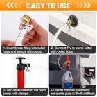 Return Policy Fast Delivery Trusted seller RV Winterizing Antifreeze Pump Kit - Siphon Hand Pump for Camper Trailer Water System with 3 Clamps & 2 Clear PVC Hoses & Brass Connector, Fluid Transfer Pump for Gas Oil Liquids Product Description RV Antifreeze Hand Pump Kit: Includes a hand pump, 3/4in NPT brass connector, 31.5" and 19.6" clear hoses, 3 metal clamps, and a sealing tape. This kit allows easy antifreeze injection into your RV's black and gray water tanks, preventing pipe freeze in winter and extending your RV's lifespan. Leak Prevention: The 3 metal clamps securely fasten the pump to the hose, preventing leaks and ensuring a tight connection. Tip: After adding antifreeze, run the faucet, toilet, and shower flush to ensure it circulates throughout your RV's water system. Freeze Prevention: This antifreeze winterizing hand pump kit is perfect for RVs, campers, and trailers. It quickly injects antifreeze into the black tank flush line or city water system, preventing pipes from freezing or bursting in cold weather, and ensuring normal water flow. Durable Materials: The RV winterizing pump is made of corrosion-resistant, lightweight, and durable plastic. The PVC hose is soft, pressure-resistant, and won't crack or age easily. This kit is an essential tool for protecting your camper's hose from winter damage. Easy to Use: Just connect the hose to the siphon pump, secure it with a clamp, and attach the short hose to your RV's black water spray pump. With a few manual pumps, antifreeze flows easily into the tank. Detailed instructions are included, and the hose can be trimmed for a perfect fit if needed. Shipping Returns Payment Shipping Shipping is FREE to all addresses other than APO/PO boxes in the lower 48 states. All our stock ships from US-based warehouses. Shipped via USPS or UPS (depending on location and package weight) Unless stated otherwise, all orders will ship within 24-72 hours of your payment being processed. Check our feedback to see the great reviews of FAST shipping we offer. Returns Seller does not accept returns Payment We currently accept payment via eBay managed payments only. Once payment is cleared, we will dispatch your shipment within 1-3 business days. Please refer to the "Shipping" tab for more information regarding shipping speed to your destination.