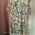 RVCA Floral Button-Up Dress featuring cinching in the back and logo. Size SM/8 Gently pre-owned. Tropical floral dress with button-up front. Short sleeves and collared neckline. Perfect for casual outings. Surfer, skater, sk8, beachy, coastal, skate, grunge, casual, graphic, comfortable, retro, laid-back, loose, 90’s vibes, Hawaii, Cali, Hawaiian dress