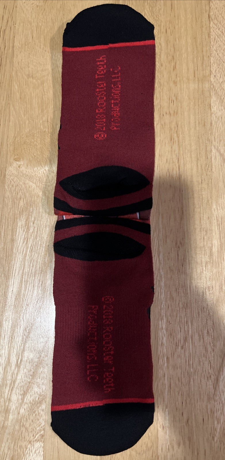 The product is a pair of RWBY Crew Socks manufactured by Bioworld in 2018. The socks feature the character Ruby Rose from the animated TV show RWBY. Made from a blend of polyester, spandex, other fibers, and cotton, the red socks bear the iconic theme of anime & manga, making them a must-have collectible item for fans of the show. Made in China and officially licensed by Rooster Teeth, the creators of RWBY, these crew socks are a perfect addition to any animation merchandise collection.
