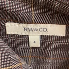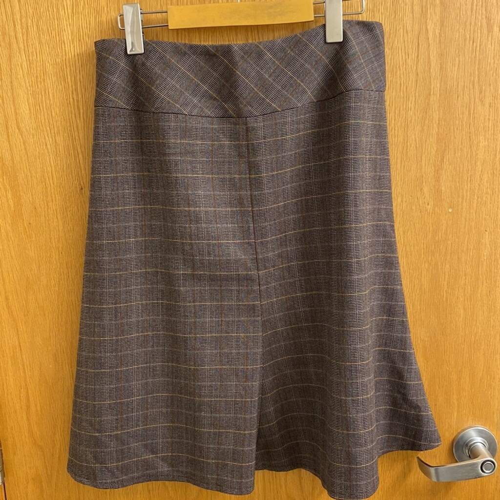RW & Co Brown Plaid Swing Midi Skirt Women’s Size 4 Lined Office School Made in Canada! Side zip Polyester rayon and spandex blend Very good used condition Waist across 15 inches Waist to hem 21 inches