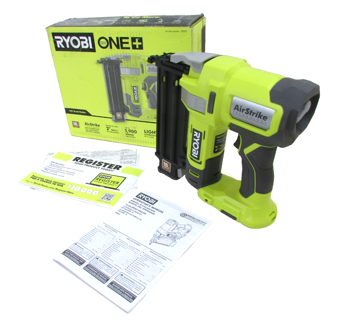 THIS IS A UNUSED ITEM RYOBI ONE 18V CORDLESS TOOL 18 GAUGE AIRSTRIKE BRAD NAILER P321 5/8" TO 2" NAILS 18 GAUGE COMES JUST AS PICTURED UNUSED CONDITION! WE ALWAYS HAVE SEVERAL AUCTIONS RUNNING WITH QUALITY NAME BRAND TOOLS...CHECK THEM OUT! 105-D