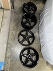 DRAG PACK!!! 18x5 front 17x9.5 rear Brand new! Mounted only to test fitment! Custom Gloss Black Gold Tri-Coat Pearl Paint OPEN TO OFFERS tags: Dodge charger Dodge challenger dodge demon trackhawk hellcat redeye drag pack The Race Star Drag Pack is a 4-wheel combo kit designed for the 2009 and newer Challenger models. The kit includes 18x5 front wheels and 17x9.5 rear wheels in a stylish Metallic Gray finish with Pearl Gold Black accents. These cast wheels feature a 5x115 bolt pattern and a metallic finish, providing a sleek and high-performance look for your vehicle. The wheels come with specific rim widths, rim diameters, and offset measurements suitable for the Challenger, offering a complete set to enhance both the appearance and performance of the car.