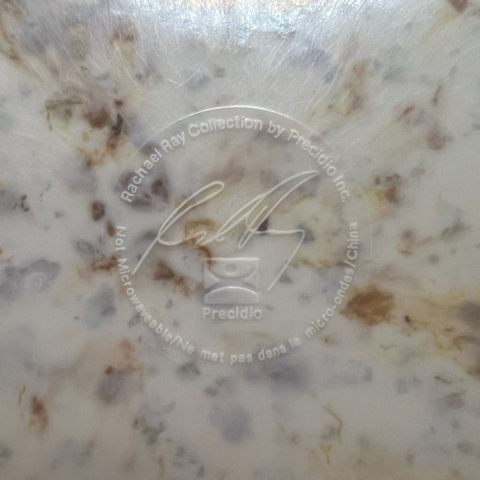 Rachael Ray Collection Garbage Bowl by Precidio Inc. 10-Inch Melamine Confetti Mixing Bowl in good pre-owned condition. This vibrant, retro-style bowl features a unique abstract/confetti pattern in earthy tones. - Material: Durable Melamine - Size: 10-inch diameter - Style: Confetti / Speckled finish - Care: Dishwasher safe; Not for microwave use - Condition: Light surface wear consistent with age and use. No cracks or large chips observed.
