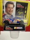 The Racing Champions Robby Gordon #40 diecast replica stock car is a 1:144 scale model of the Chevrolet vehicle he drove in the 1997 NASCAR race series. The blue car features authentic Racing Champions and NASCAR branding, with details such as Robby Gordon's name as the driver. This diecast replica also includes a card and display stand, making it a collectible item for fans of racing and diecast vehicles.