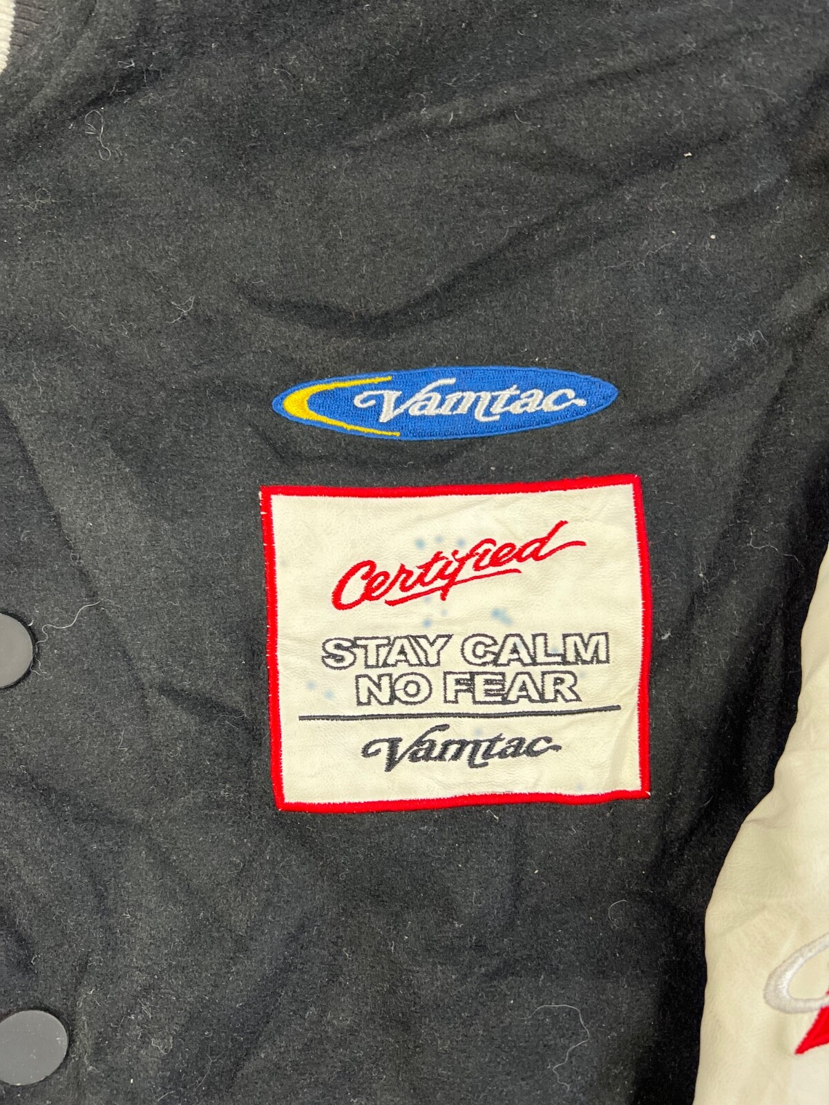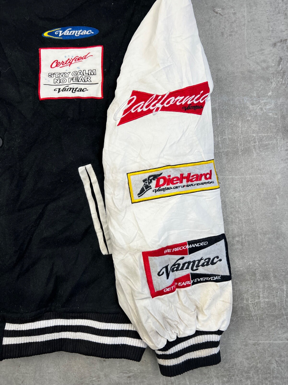 CIRCA 1990S A LETTER JACKET IS A BASEBALL-STYLED JACKET TRADITIONALLY WORN BY HIGH SCHOOL AND COLLEGE STUDENTS IN THE UNITED STATES TO REPRESENT SCHOOL AND TEAM PRIDE AS WELL AS TO DISPLAY PERSONAL AWARDS EARNED IN ATHLETICS, ACADEMICS OR ACTIVITIES. LETTER JACKETS ARE ALSO KNOWN AS "VARSITY JACKETS" AND "BASEBALL JACKETS" IN REFERENCE TO THEIR AMERICAN ORIGINS. MADE IN KOREA GOOD VINTAGE CONDITIONS: NO SIZE TAGS - FIT M/L CHECK MEASUREMENTS PIT TO PIT 57 CM SLEEVE LENGTH 57 CM SHOULDERS 57 CM BACK LENGTH 61 CM
