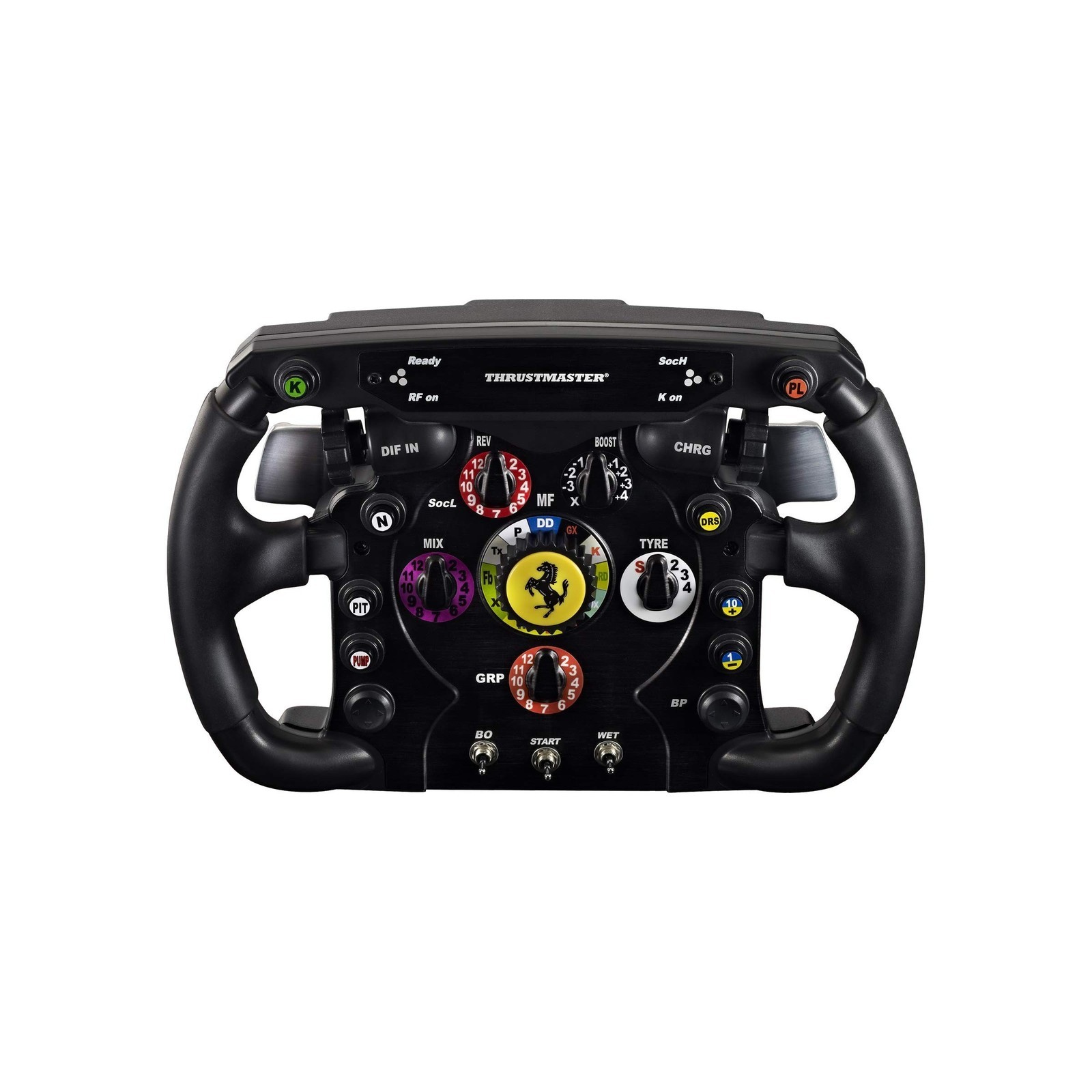 Thrustmaster F1 Racing Wheel (compatible w/ PS5, PS5 Pro, PS4, XBOX Series X/S, One, PC) Description The Ferrari F1 Wheel Add-On is a detachable racing wheel featuring the “THRUSTMASTER Quick Release” system allowing users to quickly switch from the T500 RS GT wheel to the F1 Ferrari wheel (and conversely). It is a full-size replica of the Formula 1 Ferrari 2011 racing wheel, under official license by Ferrari, for the THRUSTMASTER T500 RS (T500 RS driving simulator sold separately). There are two available game modes: 1.) “Normal” mode, PC and PS3™ compatible (offering 13 action buttons and 3 D-pads); and 2.) “Advanced” mode, PC compatible (offering 25 action buttons and 1 D-pad). Please note that a T500 RS firmware update (available from THRUSTMASTER's website) is required to operate the F1 Ferrari racing wheel. From the Manufacturer > P.when('A').execute(function(A) { A.on('a:expander:toggle_description:toggle:collapse', function(data) { window.scroll(0, data.expander.$expander[0].offsetTop-100); }); }); Manufacturer Contact Information > See more Features: Collectors item. Detachable Ferrari 150th Italia racing wheel replica for the Thrustmaster T300RS (PS3 & PS4); T500RS (PS3, PS4, Xbox One & PC); and TX Wheel (Xbox One & PC), all sold separately A precise, robust and realistic racing wheel Full-size replica of the Formula 1 Ferrari 2011 racing wheel, under official license by Ferrari Reinforced scratched-brushed metal face is heavier and more solid compared to plastic, ensuring optimum stability and inertia Rubber-textured wheel offering a realistic and comfortable grip Product Details: Release date: October 18, 2011 Product Dimensions: 12.52 x 8.9 x 5.39 inches; 2.87 Pounds Type of item: Video Game Language: English, French Item model number: 4160571 Is Discontinued By Manufacturer: No Item Weight: 2.86 pounds Manufacturer: Thrustmaster Date First Available: September 27, 2011 Delivery We Do Not Ship Outside of the Continental US. Return Policy All items qualify for returns within 30 days of receipt. Seller is responsible for return shipping on any item that is not damaged. Feedback We take our reputation seriously, we buy and sell online, so we understand the value of trust. If you are unsatisfied with your order, please contact us and we will work with you to resolve it to your satisfaction. WELOCME TO BUY SpoilerKing Gurney Flap Add-on Lip Spoiler (284Q) Compatible with Honda Civic... 130.63 USD Free shipping Flashpower Steering Wheel Short Adapter 9 bolt and Horn Button Polished Compa... 86.47 USD Free shipping Wheels, Fit For Toyota Tundra & Sequoia, 18x9, 5x150, +12mm Offset, Black 206.03 USD Free shipping Seat Covers - Fit For Saturn Sky 2007-2010 - Artificial Leather 176.63 USD Free shipping Soft Leather Steering Wheel Cover, 14.5-15.5 Inch Comfy Grip Baby Pink 27.59 USD Free shipping Super Shifter, Shift Box Assembly, Push Button Reverse, Compatible with Dune ... 159.89 USD Free shipping Steering Wheel Spinner Knob, Power Handle Universal Fit For Cars Trucks Tractors 14.71 USD Free shipping Phoenix USA NF23 17" Wheel Simulator 262.11 USD Free shipping Grant 772 Formula GT Steering Wheel 147.48 USD Free shipping 6 Hole Billet Steering Wheel Adapter for 1978-1982 All Model Fords 55.19 USD Free shipping Steering Wheel Spinner Knob, w/ Quick Release, Sport Style 70.83 USD Free shipping Evan Fischer Radiator Support Compatible with 2011-2014 Hyundai Elantra - HY1... 138.91 USD Free shipping Universal Car Racing Steering Wheel 350mm/13.8" 6 Bolts Automotive Drift Stee... 38.63 USD Free shipping Steering Wheel, Grant 772 Formula GT, Sport Design 147.48 USD Free shipping Steering Wheel Cover, Microfiber Leather, Anti-Slip, Fit For 15 Inch, Beige 22.99 USD Free shipping Hallman PRO-RX-BK Boost Controller, Black 130.63 USD Free shipping Stabilizer, PS, IFP, Fox Shox 98524173, Silver 205.93 USD Free shipping Truhart Rear Toe Control Arms Compatible For 2016+ Civic 149.95 USD Free shipping Sim Racing Pedals - 3-Pedal Set - w/ Load Cell - for PC/PS4/PS5 364.31 USD Free shipping Pink Steering Wheel Cover w/Crystal Rhinestones, Leather, Anti-Slip, 14.5-15 In 24.35 USD Free shipping Fanatec Sim Racing ClubSport Steering Wheel F1 Esports V2 – Officially Lic 273.23 USD Free shipping