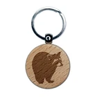 Racoon Sketch Engraved Wood Round Keychain Tag Charm