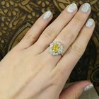 Radiant Cut Simulated Yellow Citrine Halo Engagement Ring 14K White Gold Plated