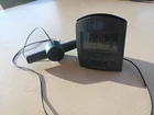 This beautiful clock is fully functional. With its antenna, you'll always know that your time is accurate. The backlight works well if you hit the button on top which is also the snooze. It still has the antenna adhesive on it too so you can mount it if needed. Great quality atomic alarm clock.