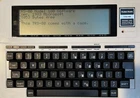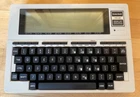 This vintage portable trim line computer, made in Japan, is perfect for collectors and computer buffs. It is in excellent condition for its age and comes with a leatherette case. It is powered by 4 AA batteries (not included) and powers up just like it did in the 80’s. It can also be powered with an AC adapter (not included).