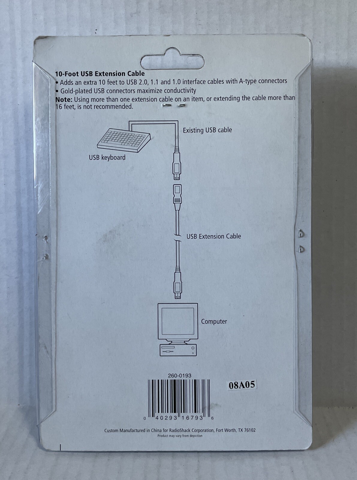 RadioShack Black 10-Ft. USB Extension Cable Computer Accessory New Sealed See photos for details and condition