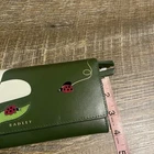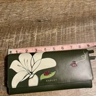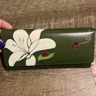 Beautiful wallet with floral print. Ladybirds are dotted across this large purse, investigating the flowers that bloom across the flap of this smooth leather shape. Made with a combination of appliqué, inlaid leather and screen prints. Made with smooth leather. Inlaid leather, appliqué and screen prints. Flapover shape with press stud fastening. 19 card slots. Two compartments. Two slip pockets. Zipped coin pocket. Zipped back pocket. Foil logo. Height 9.5cm Width 19.5cm Depth 2.5cm Main 100% Leather. Lining 65% Cotton, 35% Polyester.