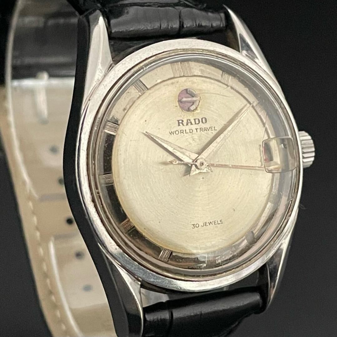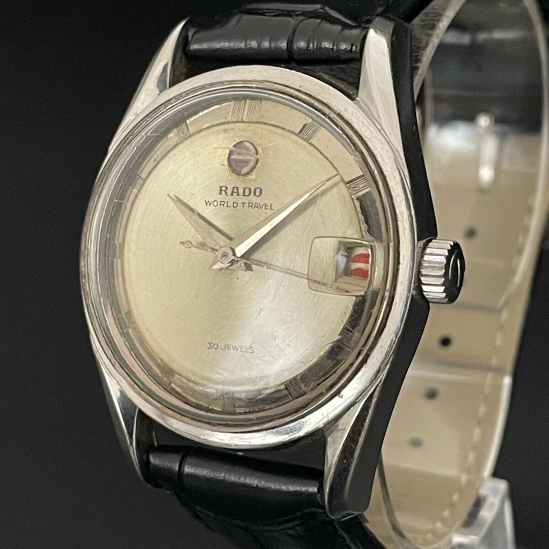 This Rado World Travel automatic watch is a stunning blend of Swiss precision and timeless style. The 33mm case houses smooth automatic movement, while the date function adds practicality. Its sleek, versatile design transitions effortlessly from business to casual wear. Rado's reputation for quality shines through in every detail—a true statement piece that keeps perfect time. Love how lightweight yet durable it feels on the wrist!