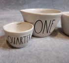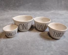 Original/Reproduction:OriginalSeller Notes:“Great used condition, may show signs of use, see images.”Franchise:Rae DunnTheme:ArtNumber in Pack:4Number of Items in Set:4Time Period Manufactured:2010-2019Style:ContemporaryMaterial:CeramicShape:RoundPattern:Large LetterSet Includes:Measuring cupsAntique:NoOccasion:All OccasionsFeatures:Dishwasher Safe, Easy Clean, Hold & Cold, Measurement Markings, Measuring Cup Included, Nesting, Refrigerator Safe, Reusable, Rust Free, Rust Resistant, Waterproof, Water ResistantModel:Measuring CupsHandmade:NoBrand:Rae DunnColor:WhiteFood Compatibility:UniversalType:Nesting Measuring Cups