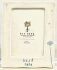 Elevate your cherished memories with the Rae Dunn White Ceramic Photo Frame, adorned with blue accents and a heartwarming "Best Nana" and floral theme. This elegant 5x7 inch frame is designed to showcase your most treasured moments in a portrait orientation, complete with a rear-loading design for easy photo insertion. Crafted with a glossy finish and clear glass, this frame is a blend of functionality and style. Measuring 9 inches in height, 7 inches in width, and 3.5 inches in length, it's the perfect size for displaying a single photo, making it a meaningful addition to any space or occasion. Whether it's for your own collection or as a thoughtful gift, this frame is sure to delight.