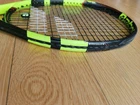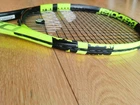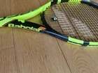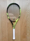 Rafael Nadal Personal Practice Used Babolat AeroPro Drive Tennis Racket This is a AeroPro Drive Pro Stock Racket that Babolat customized for Rafael Nadal in 2015. The racket has a Pure Aero Play paint job. However as you can tell from the grommet and string pattern, it is an AeroPro Drive Original (without cortex) which is the mold Nadal has actually been using throughout his career. This was one of the actual rackets Rafael Nadal play tested in a 2015 practice with Babolat team. Search for “The new Babolat Pure Aero: creating the 6th Generation” on Youtube for a video of this event. The racket featured a special glossy finish. The racket has Rafa’s name painted on it as well as a Babolat customization label. The racket feels very head heavy due to customization. Shipping via USPS Priority Mail. Shipping to US only.