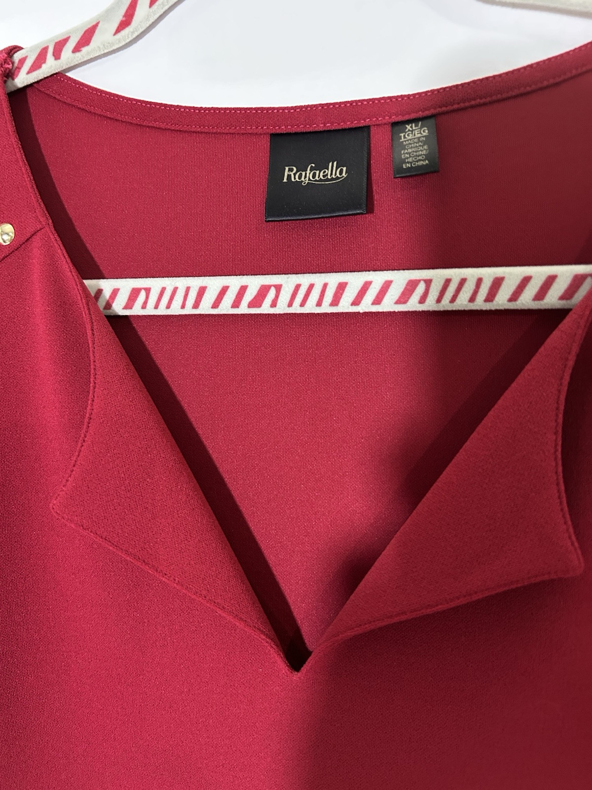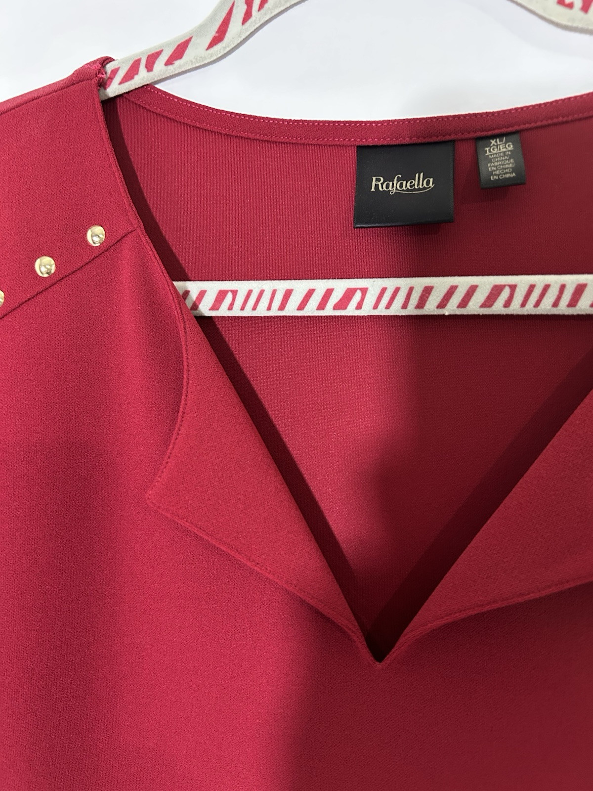 Rafaella Women’s Red Tunic Shirt Blouse Gold Accents Size XL
