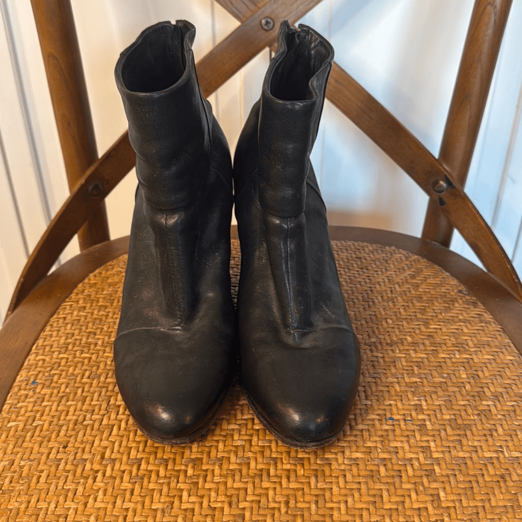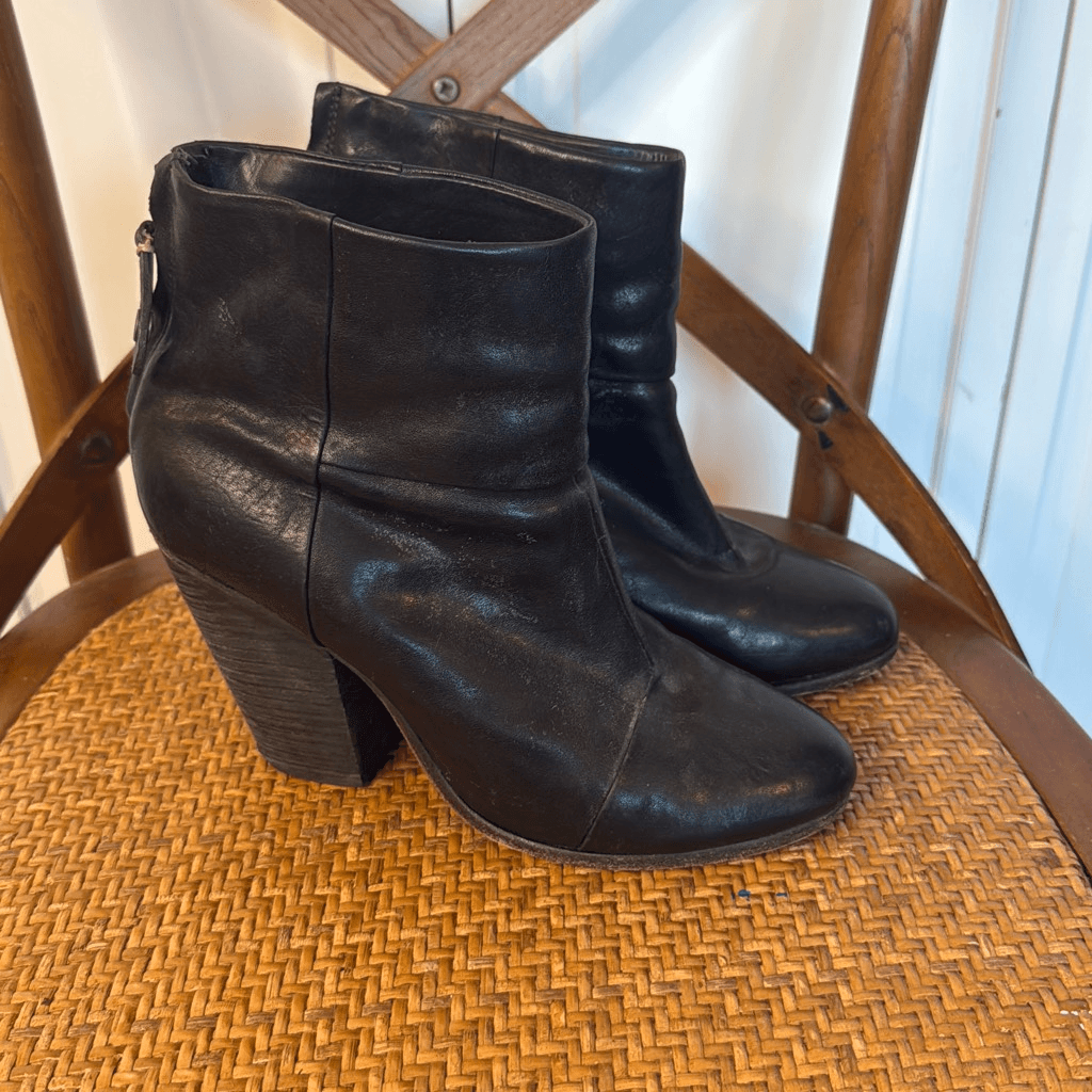 Brand: Rag & Bone Description: leather classic newbury 3” back zipper bootie Size: 9 Color: black Condition: Gently Worn small imperfection to one heel **Bundle and Save!!** all measurements are approximate and taken laying down