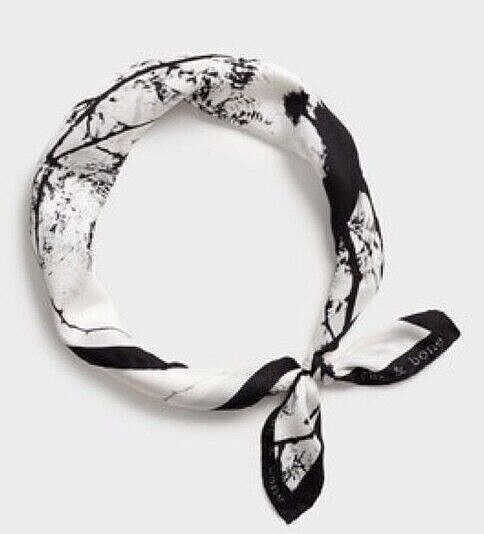 Rag & Bone women's Archive Silk Bandana color: White / Black 100% Silk 21" x 21" Archive design retail $95 G168