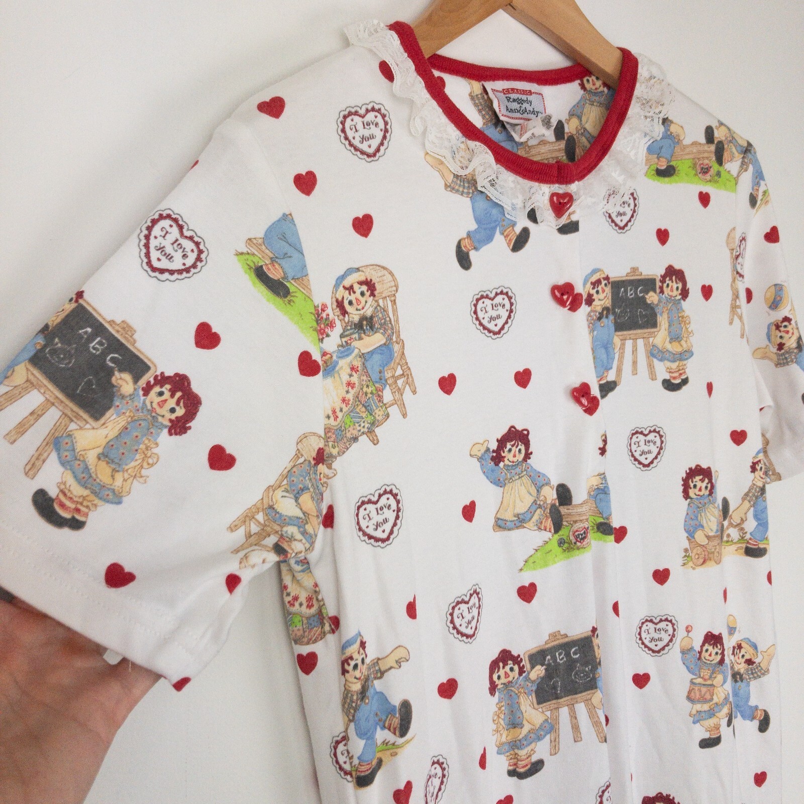Item Description : Raggedy Ann & Andy Dress Notes & Features : Made in Canada Heart buttons Lace ruffle Size : Women's Size Medium Measurements : Please see photos. If a measurement is missing, ask and we will get it for you. Condition : Good pre-owned condition. Flaws : None found. Item was fully laundered using fragrance-free unscented organic detergent. Shipping : We always ship via the USPS with a tracking number ASAP, Monday-Saturday, and do our best to take care of you and the item at ALL times. Please see the Shipping, returns, and payments section for all available shipping options and prices. Packaging : The item is packaged/shipped in a sealed plastic bag inside of a sealed poly bag mailer. Storage : All items are stored in a smoke free home. Any questions? Please ask; we are happy to answer. Thank you for looking!