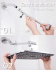 Wide Coverage Style: Our large 11.8 inch wide shower head allows for full body water coverage for your most satisfying shower yet. Enjoy the feeling of true luxury with our generously sized design that never leaves you in the cold Rainfall Sensation: Experience the sensation of true relaxation with rainfall style water flow. Intended to mimic the soothing rain, our shower head provides a truly calming experience that will leave you feeling refreshed and rejuvenated Adjustable Extension Arm: Featuring an adjustable swivel ball connector, our deluxe 11” extension arm is attached with solid stainless steel joints for ultimate customization and durability. Tilt and turn with ease to find the perfect height for your next shower Anti-Clog Nozzles: Avoid weak water flow and inconvenient repairs with our innovative anti-clog nozzles. Our 11.8 inch shower head is designed to always keep your water pressure optimal and your shower experience satisfactory Easy Tool Free Installation: No tools? No problem. Our shower head is designed for a completely tool-free installation, allowing you to quickly and effortlessly upgrade your current shower setup. Enhance and enjoy your daily routine in seconds