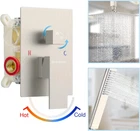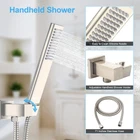 Quality Assurance Brings Easy Shopping: EMBATHER Shower System(ALL Shower Unit) has cUPC Certification and Complies with the Following Standard(S): Asme A112.18.1-2018/Csa B125.1-18. Designed for Use with Standard 1/2 " U.S. Plumbing Connections. Approved by the California Energy Commission.Flow Rate is 1.75 Gallons Per Minute (6.6 L/min).No Need to Worry about The Installation Failure due to Certification Issues Quality Promise: This shower system features all-metal sturdy construction. The mixing valve is made of solid brass with rust-free, long-life characteristics, while the 304 Stainless Steel Rain Shower Head with silicone nozzles allows you to wipe away mineral deposits with the swipe of a finger Protect Your Family: The pressure balance valve has built-in two check valves to effectively eliminate water hammer noise. The pressure balance valve's cartridge monitors water pressure balance, helping to protect you from being scalded by sudden changes in hot or cold water pressure Ultimate High Pressure Shower: Thanks to the ultra-thin design of the rain shower, even in low water pressure environments, the water can achieve a high pressure rain shower experience when it flows out of the ultra-small space Installation with Confidence: Just Install This Shower Set at Ease Because You are Supported by EMBATHER LIFETIME WARRANTY! If You Have Any Questions with Shower Head and Handle Set, Please Feel Free to Contact Us If Any Question, We will Respond within 24 hours Product Description EMBATHER Ceiling Mounted Shower System with 10 Inch Shower Head Brushed Nickel High water pressure skin-friendly gentle large water-flow Full-body Showering Coverage-10'' Large Size Rainfall Shower Head Ideal for Adult, Kids, Old Man bathing Ceiling Shower Head 10 x 10 inch High pressure water output (Stable in 1.75-2.5GPM) Large water output Handheld Shower Spray High pressure water output (Stable 1.75-2.5GPM in any situation ) Large water output Shower Valve with Trim One-in-piece Brass valve with trim Balance water, prevent sudden hot/cold water Adjustable Shower Holder 360° angle adjustment Find the right angle for your shower and soothe your tired body Silicone Nozzles 10 x 10 = 100 Silicone Spray Nozzles Body coverage Easy to clean No mineral accumulation, No blockage 1 Ceiling Shower Head 2 Handheld Shower Spray 3 Shower Valve with Trim 4 Adjustable Shower Holder 5 Silicone Nozzles